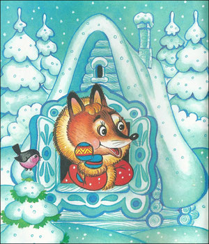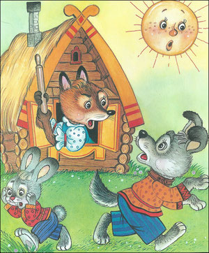 Подошли они к избушке. Медведь как зарычит: "Поди, лиса, вон!" А лиса им с печи: "Как выскочу, как выпрыгну, пойдут клочки по закоулочкам!" Медведь испугался и убежал.